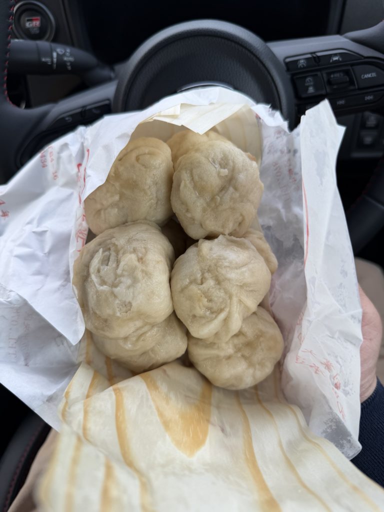 帰り道の食事に豚まんを買って帰りました。